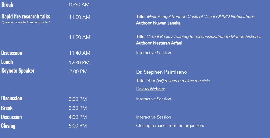 The crux of this workshop is the creation of a better understanding of the various perceptual and cognitive issues that inform and constrain the design of effective augmented reality systems. There is neither an in-depth overview of these factors, nor well-founded knowledge on most effects as gained through formal validation. In particular, long-term usage effects are inadequately understood. However, mobile platforms and emerging head-worn display hardware (“glasses”) ignite the number of users, as well as the system usage duration. To fulfill usability needs, a thorough understanding of perceptual and intertwined cognitive factors is highly needed by both research and industry: issues such as depth misinterpretation, object relationship mismatches and information overload can severely limit usability of AR applications, or even pose risks on its usage. Based on the gained knowledge, for example new interactive visualization and view management techniques can be iteratively defined, developed and validated, optimized to be congruent with human capabilities and limitations en route to more usable AR application interfaces.